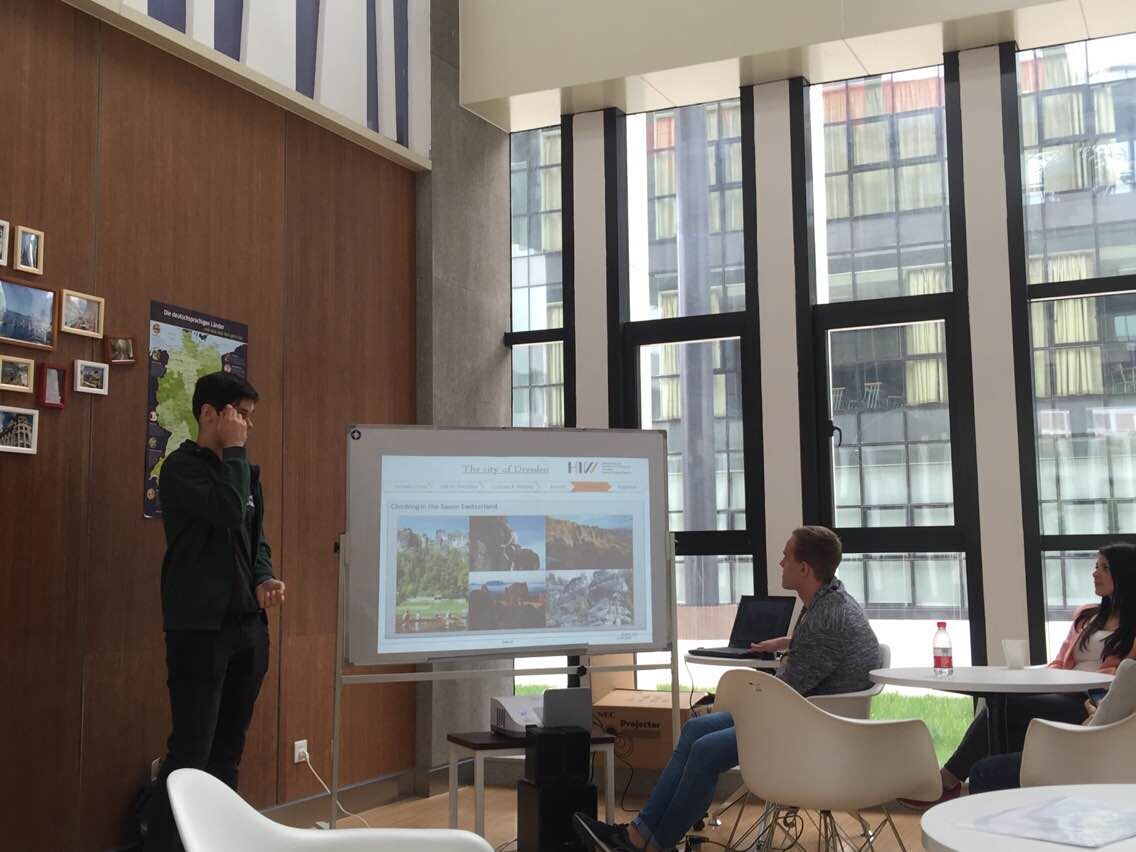 4月24日下午,来自德国德累斯顿工程和经济应用技术大学(Hochschule für Technik und Wirtschaft Dresden)的交流团到访91网 I-Cubic咖啡吧,并与91网 学生进行交流互动。