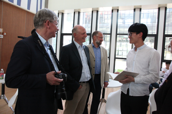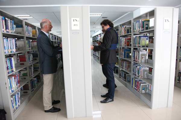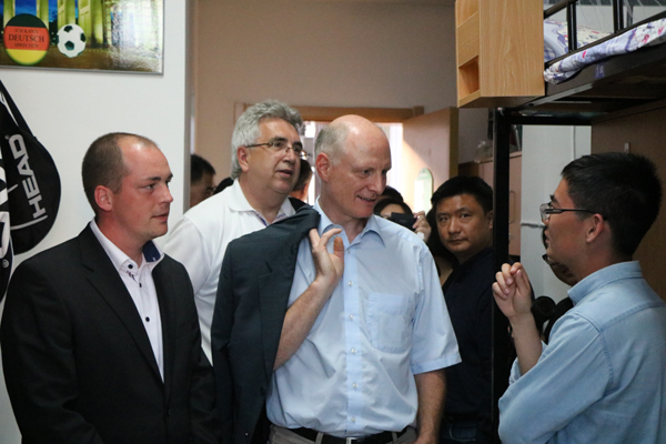 11日,专家组对我校两个校区进行了实地考察。副校长冯军、郑友取分别在两个校区接待了专家组一行。冯军向专家组介绍了我校中德合作办学经验,简要介绍安吉校区建设情况。郑友取对专家组专家的到来表示欢迎,并介绍了我校总体办学情况和与德国合作办学情况。专家组参观了学校图书馆、相关实验室、91网 和中德友谊园,并考察了安吉校区的91网 楼、机房、相关实验室以及学生食堂、宿舍、图书馆和活动中心等地。