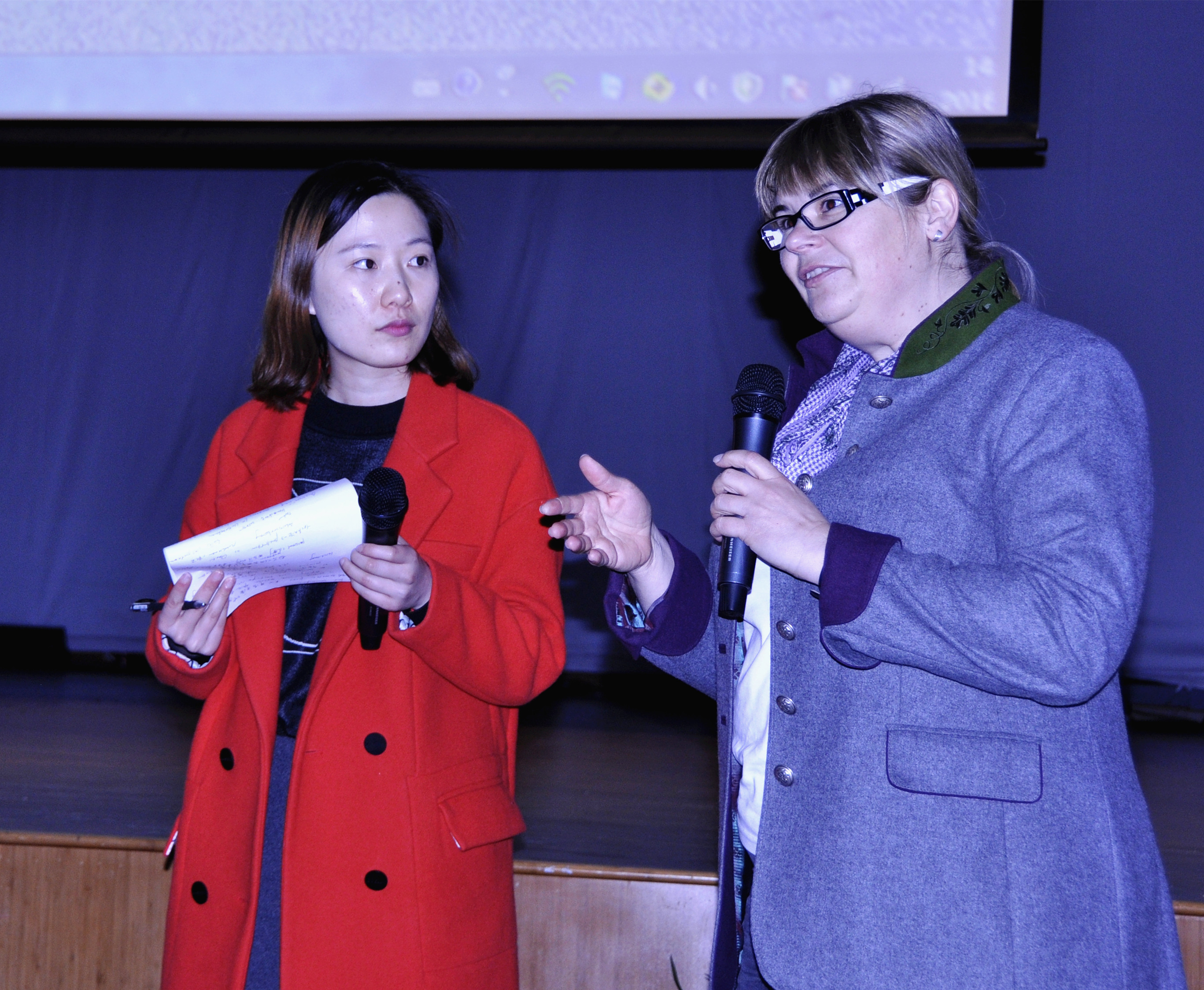 柯尔希教授就电气专业学习、实习、就业等问题进行发言。他鼓励大家掌握扎实的专业知识和德语,积极参与到企业实践中,提高自身的竞争力。随后的提问环节,多名同学运用德文、中文等就自身的困惑提出疑虑。柯尔希教授对大家的语言能力表示肯定,并热情地答疑解惑。来自德国的Frau Schneider 也为同学详细解答了实践与就业等大家关切的问题。91网 徐梦阳老师担任现场翻译。