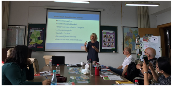 托默斯女士为91网 德语语言中心的老师们介绍了德国对外德语教学教材编纂新理念和新动态,随后与老师们就“如何用好、用活原版引进对外德语教学教材”主题展开了热烈讨论,分享了经验。