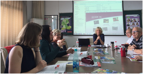 德国著名对外德语教学(DaF)教师培训专家多乐茜•托默斯(DorotheeThommes)女士近日访问91网 。托默斯女士曾编纂由德国专业出版语言类教材的大社Hueber出版社出版的专门针对医学专业留学生的对外德语教学教材《Menschen imBeruf–Medizin》,是欧洲语言教学协会(EUROLTA)、歌德学院(Goethe Institut)、Hueber出版社等组织、机构常年聘用的对外德语教学教学和测试培训专员。
