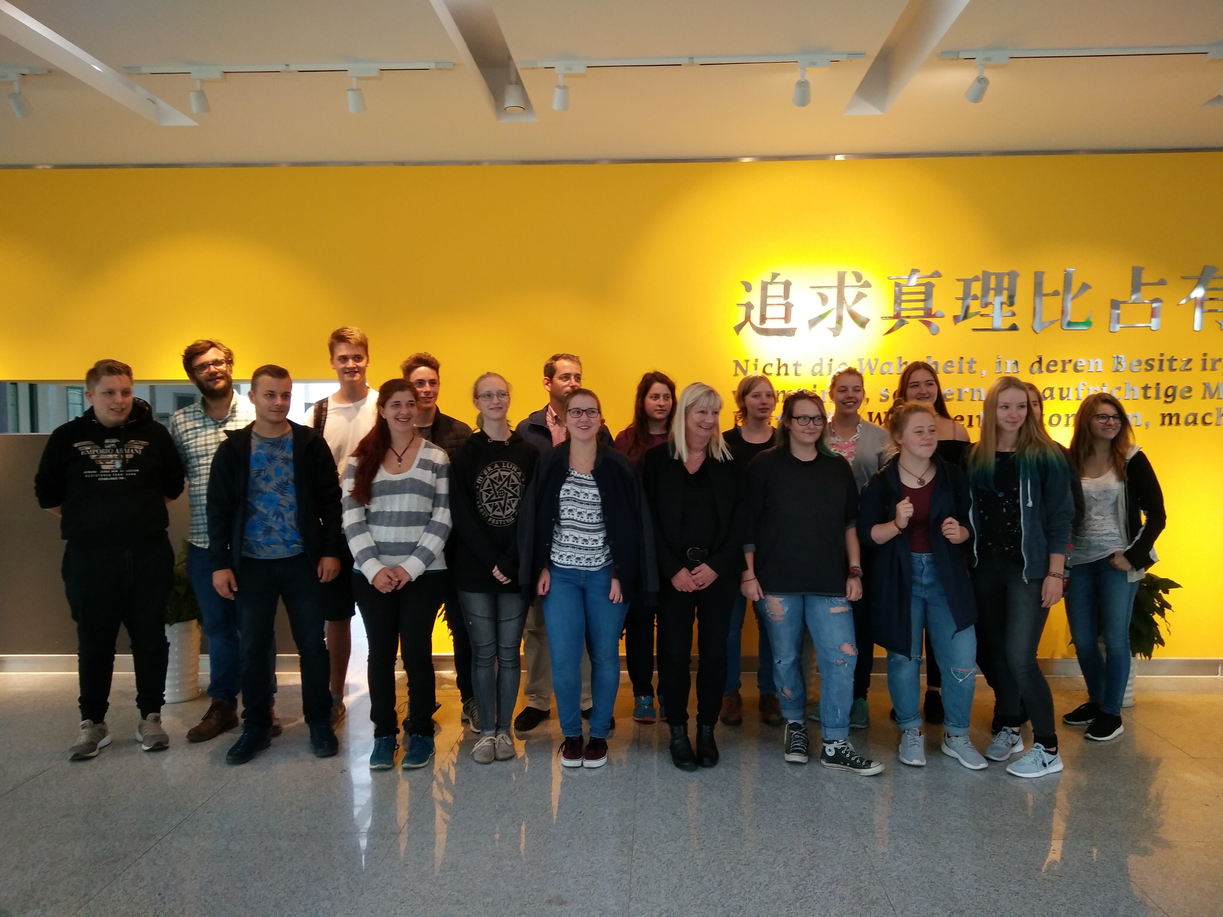 10月13日中午,在中方项目协调员安德鲁斯·哈姆斯(Andreas Harms)、迈克尔·斯达姆麦尔(Michael Stammeier)、部门主管芭芭拉·布克斯(Barbara Bucksch)的带领下,来自德国北部石荷州小城奥伊廷(Eutin)职业中学的学生代表团一行19人来91网 进行参观和访问,91网 院长徐理勤、教学院长弗兰克·坎伯(Frank Kemper)、党支部书记李成炜及相关教师参加了见面交流会。