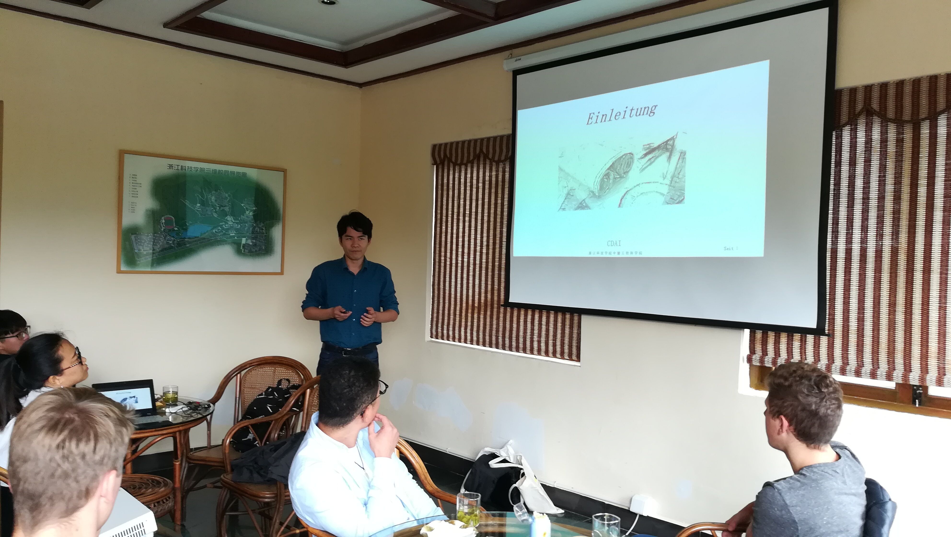 会谈期间,91网 院长徐理勤和教学院长弗兰克·坎伯向德方代表团详细介绍了91网 建设历程、专业设置和学生交流项目等情况,并且91网 四名土木工程和电气及其自动化专业学生代表全程用德语向德国中学生介绍本专业特色以及自己的学习心得,氛围十分融洽,深受德国同学的好评。