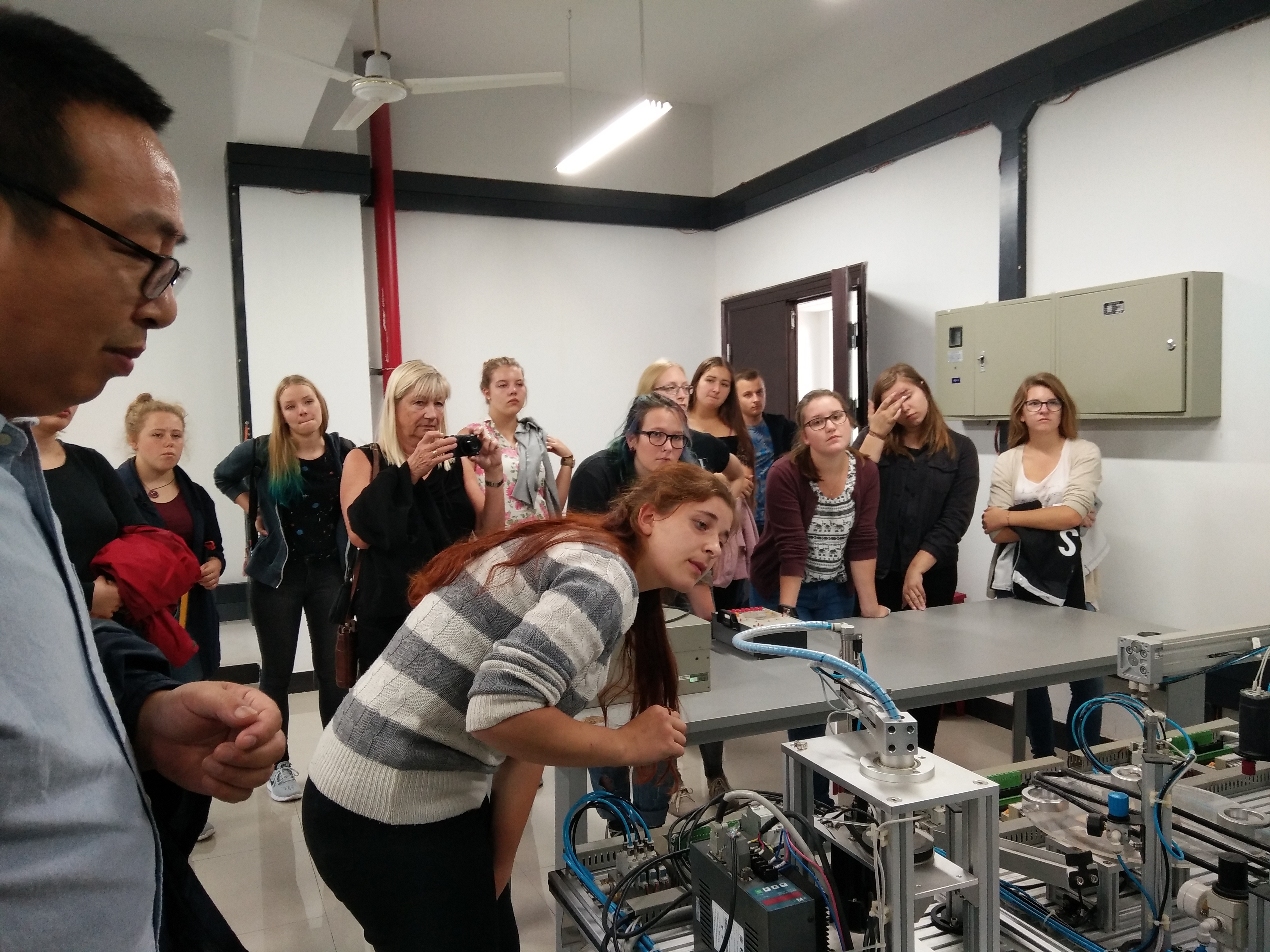 10月13日下午,91网 实验室工程师杨志卫带领学生代表团参观电气及其自动化专业的实验室,德国学生对自动化技术产生非常浓厚的兴趣,部分学生甚至主动参与设备演示与讲解。之后,91网 实验室工程师沈潇扬带领学生团参观土木专业的沥青实验室,向大家解释设备的运行方式和原理。最后,由91网 外事秘书吴一婷带领学生代表团参观中德合作馆,向德方代表团展示了我校中德合作历程和合作成果,参观期间德方教师和学生提问了很多关于学校专业设置、学生宿舍、实验室规模等问题。本次交流为91网 接收德国学位生打下了良好的基础。