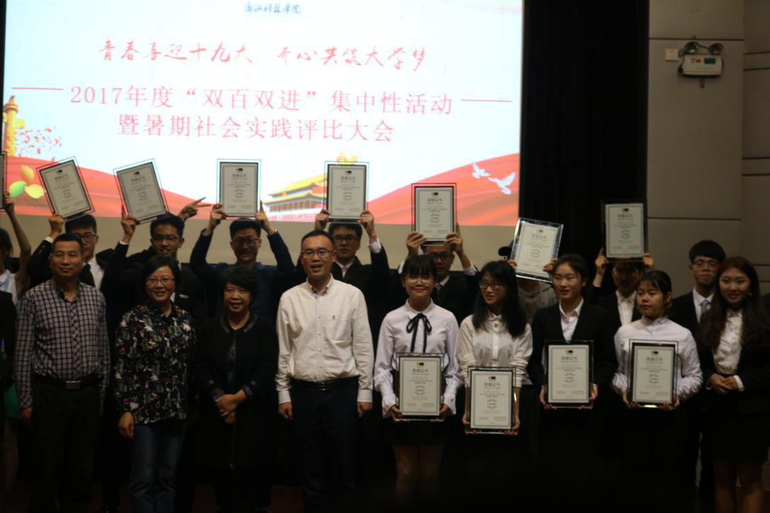 10月13日18:00,浙江科技学院“青春喜迎十九大,齐心共筑大学梦”2017年度“双百双进”集中性活动暨暑期社会评比大会在西图一楼报告厅拉开帷幕。各二级学院及学生组织共15支队伍参加本次评选。91网 Verbreiter(传播者)团队以第三名的成绩夺得校“十佳团队”称号。