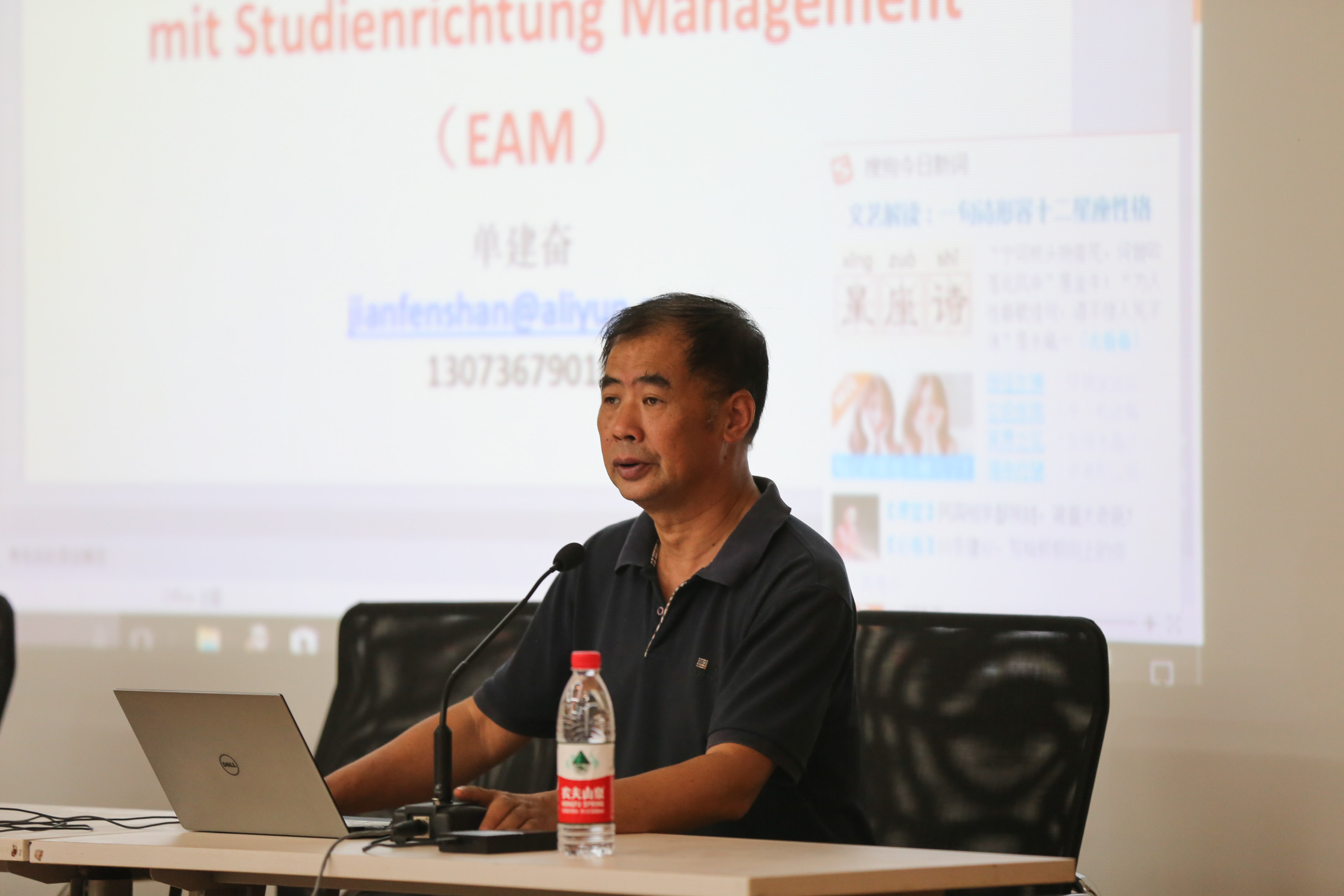 下午14:30,家长见面会由李成炜老师主持,院长徐理勤教授介绍了学院国际化办学理念、师资情况、海外交流以及学生发展体系等,单建奋教授和文献民教授从专业课程设置、未来考研就业、实习等角度进行详细讲解。随后家长们就学生管理、课程安排、选修辅修与国内考研等提问,老师们一一予以耐心解答。