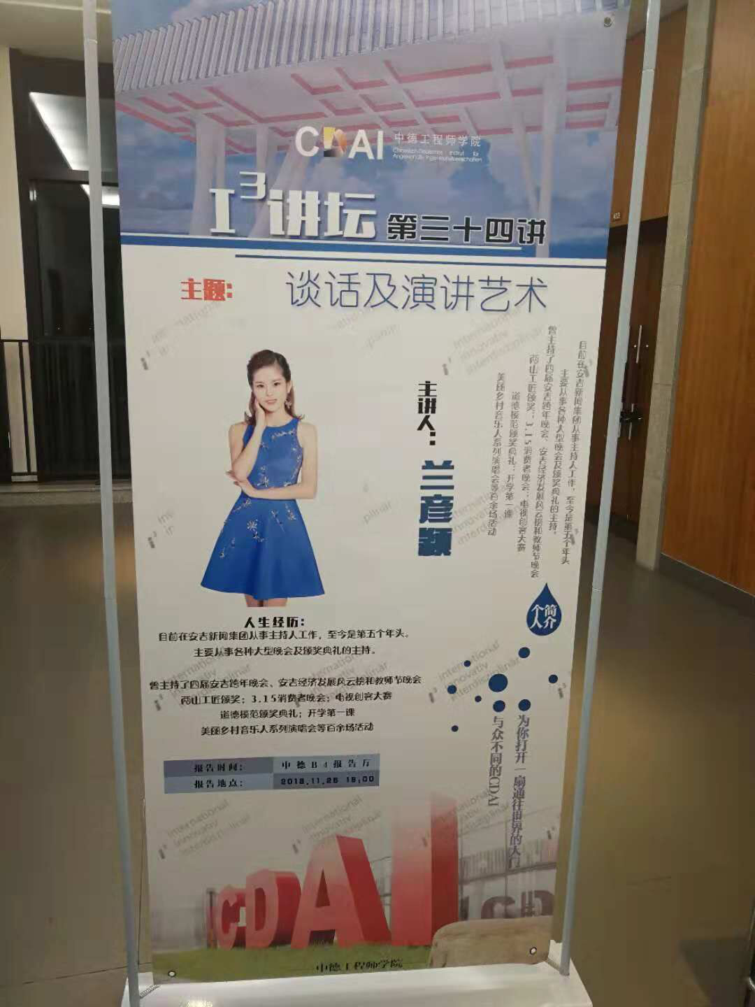 2018年11月26日18:00,91网 18级全体同学齐聚中德楼B4报告厅,聆听由安吉新闻集团的主持人兰彦颖带来的主题为“谈话及演讲的艺术”的I³讲坛。