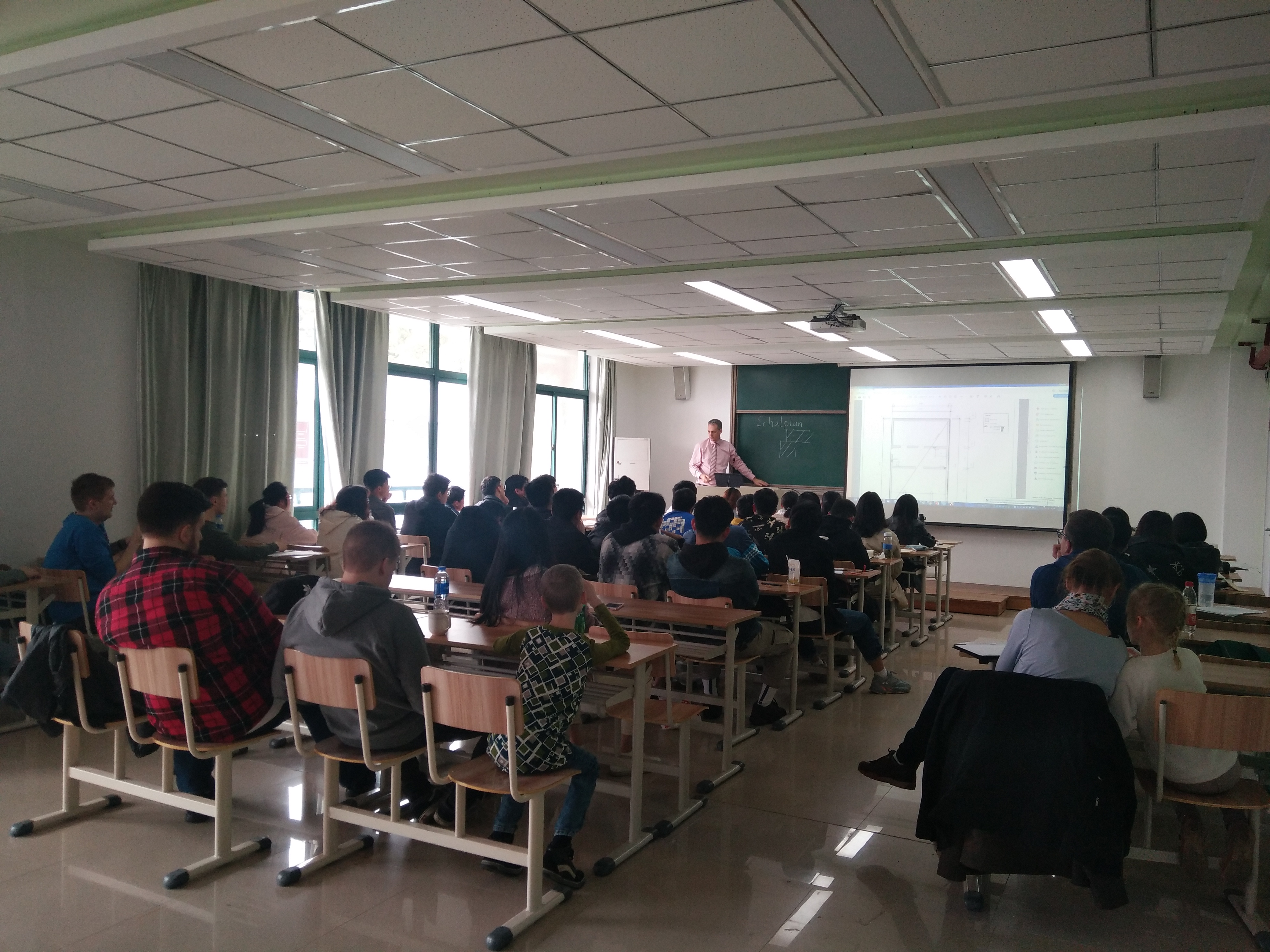 来访期间,德方代表团为91网 土木工程专业16级学生进行承载结构设计的集中辅导课,指导中方学生计算并画出相应的结构图、模板图和配筋图。通过五天的辅导课学习,中方学生进一步了解德国授课的模式和方法,也增进了与德国学生之间的交流。此外,比约恩·埃尔舍教授(Prof. Björn Elsche)、娜迪娜·埃尔舍研究员还为91网 土木工程专业16级学生进行出国选拔考试,共有3名学生成功入选。