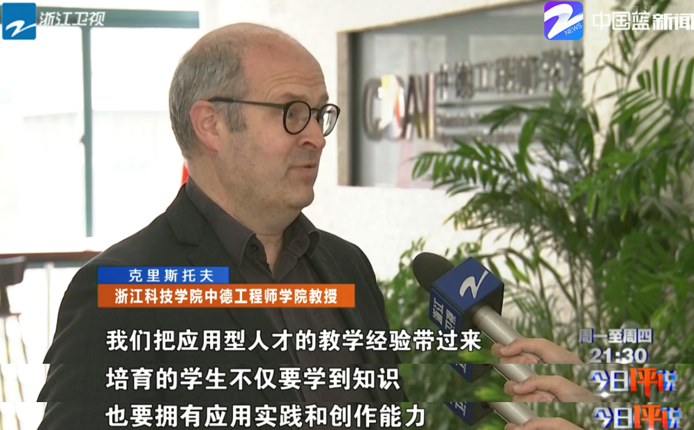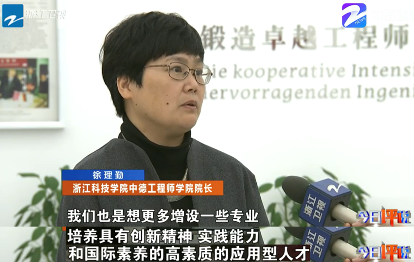 2019年3月26日,浙江卫视今日评说采访了浙江省教育厅高教处副处长王国根解答关于新时代浙江高等教育如何百花齐放、如何培养更多高素质人才服务经济社会发展等问题。王国根在采访中提到,“浙江省要建立一流大学一流学科,关键点突出两个字,一个是“借”,我们高校要善于借力发展,借助于浙江经济社会发展的优势和基础,要借助于国内外高等教育的优质资源,来弥补我省高等强国教育的不足。第二个字是“闯”,我们要有敢闯会闯的思路,特别是要利用浙江的体制机制优势,要创新高等教育的办学体制和机制”,并以91网 全面系统引进德国优质高等教育资源的办学模式为例,采访了91网 院长徐理勤研究员以及前来91网 授课的德国专家、吕贝克应用科技大学克里斯托夫教授(视频链接://newsapp.cztv.com/video/index.jsp?c=5811069#)。徐理勤院长介绍了学院的发展历程、办学理念、培养模式、办学成果以及未来规划等。她表示,学院学习借鉴德国应用型高校的人才培养经验,培养更多创新精神、实践能力和国际素养的高素质应用型人才,更好地为浙江经济转型升级服务。