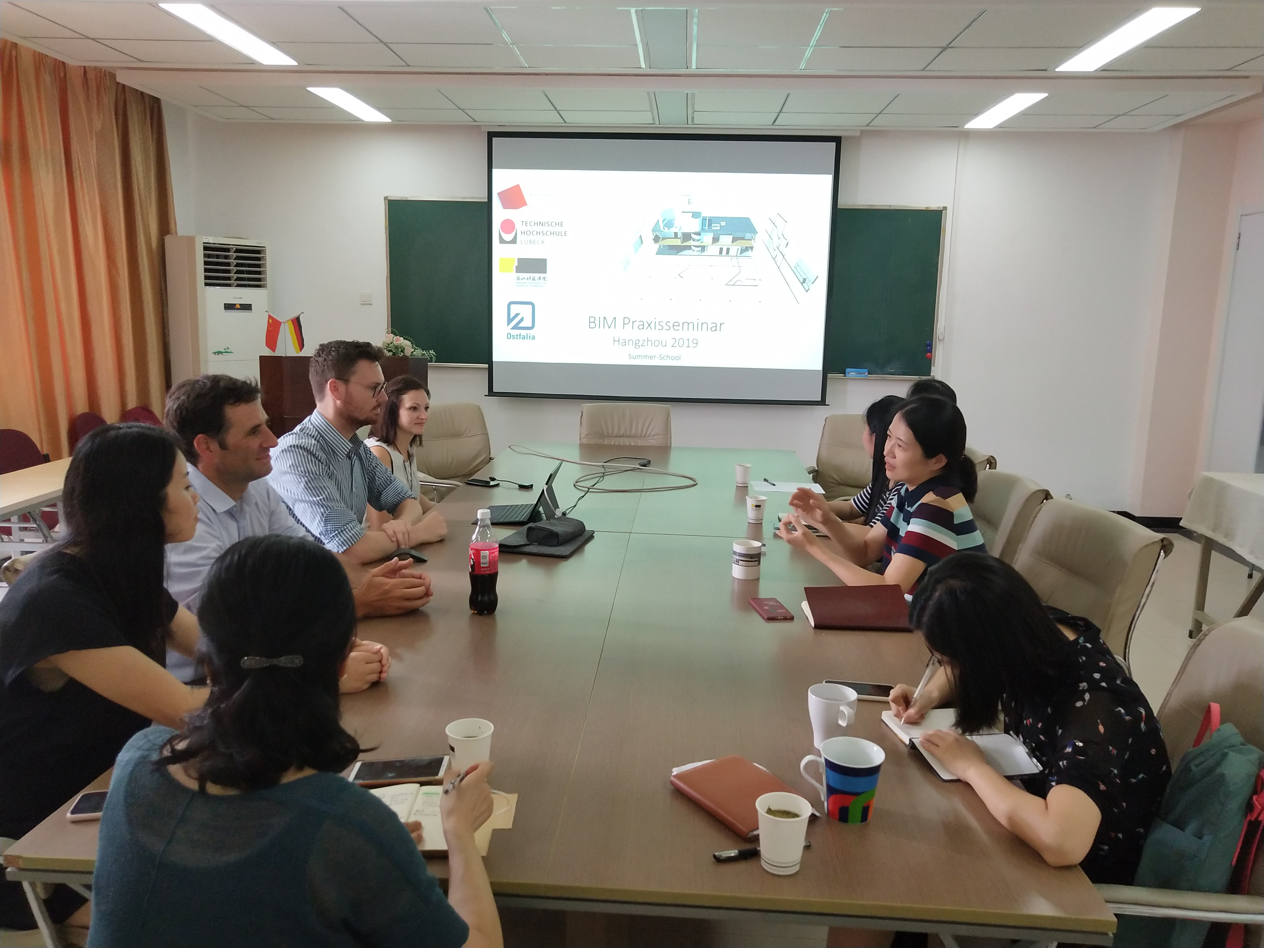 2019年9月5日,慕尼黑应用科学大学土木工程专业Jungwirth教授与他的两位助手Andre Strotmann、Hannah Wiesenfeld一起与91网 全体土木教师开展了BIM研讨会。双方对BIM在各自院校教学中的应用进行了介绍与交流,对于如何更好地让学生掌握BIM基础知识及相关应用进行了探讨。双方表示,以后将定期举行这样的研讨,互相促进BIM技术在项目教学和毕业设计中的应用。建工学院土木专业三位教师受邀参加了研讨会,介绍了其在教学中BIM技术的应用情况和参加全国BIM竞赛的经验体会。