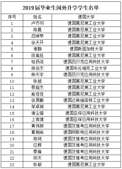 近期91网 2019届毕业生频传喜讯。23人顺利申请上国外大学研究生,占毕业生总人数的25.6%,其中13人申请上了德国最好的9所理工类精英大学之一,包括德国慕尼黑工业大学,德国达姆施塔特工业大学,德国斯图加特大学等。就业学生中15人成功进入优质企业就职,优质企业就业率达16.7%,高于全校平均水平4.3%,在全校二级学院中排名第一,其中9人成功进入世界500强企业,6人成功进入中国500强企业。