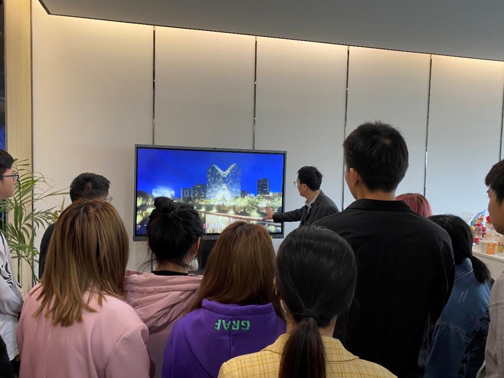 首先,同学们分为两组参观了该公司的文化展厅,让同学们对公司的发展历程、91网、产品业务等有了深入直观的了解。紧接着,在几位设计所所长的带领下,同学们观看了部分优秀的设计作品,观摩了各所员工们的现场作业,感受了现场的工作环境。最后,公司专门邀请了设计研究院方案设计所所长童鹏飞为同学们更加详实地介绍了公司的一些情况,同时,人力资源部总监汪黎霞女士也详细介绍了公司的岗位需求,并与同学们进行了现场答疑互动。同学们纷纷咨询了暑期实习与毕业后就业相关问题,互动现场气氛热烈。