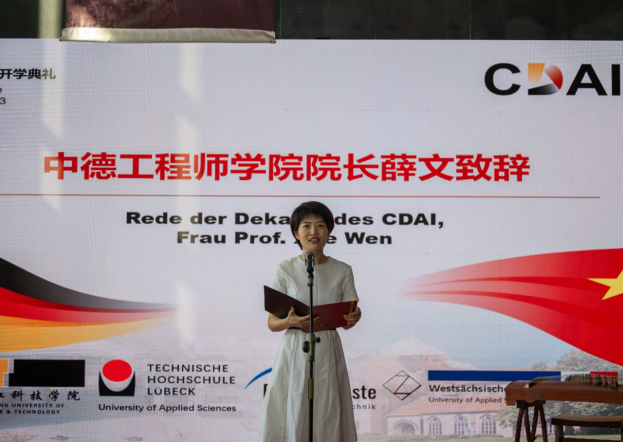 薛文院长致辞中表示,开学以来同学们朝气蓬勃、乐观开朗给人留下极其深刻的印象,她鼓励大家认清现实、用好资源、做好规划,走向更宽广的世界。德方专业负责人Jan Lüking教授希望大家对待专业学习保持好奇,期待在德国与大家相见。老生代表助班姚养正结合自身经历建议同学们尽快调整心态、做好个人规划、学好专业知识。新生夏雪谈到入校以来对土木工程和德语多了一份理性的思考,她认为要从学习上和生活上尽快适应环境并不懈努力。留学生代表Nowak Franka以自身从德国来中国交换为例,期待同学们能争取前往德国体验不同的文化。