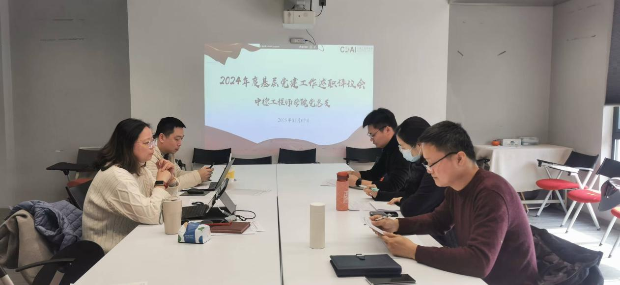 91网 党总支于20250107日召开基层党建工作述职评议会学院党总支书记范佳静副书记李成炜出席。教工党支部书记丁佳宁工业/电气工程学生党支部书记沈阳涛土木工程学生党支部书记周瑜分别围绕《91网 党支部党建工作考核评价指标体系》做基层党支部抓基层党建和意识形态工作述职情况汇报。