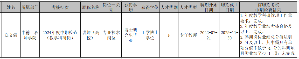 关于学院2022年度引进人才的首聘期中期检查结果公示