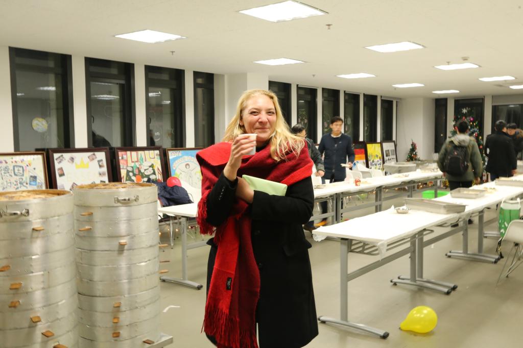 元旦吃什么?当然是美味可口的饺子咯。我们不仅有已经包好的饺子,同学们还可以选择自己动手包饺子。文老师也来一展身手,Frau Kurz对美食赞不绝口。同学们一起大快朵颐,其乐融融。