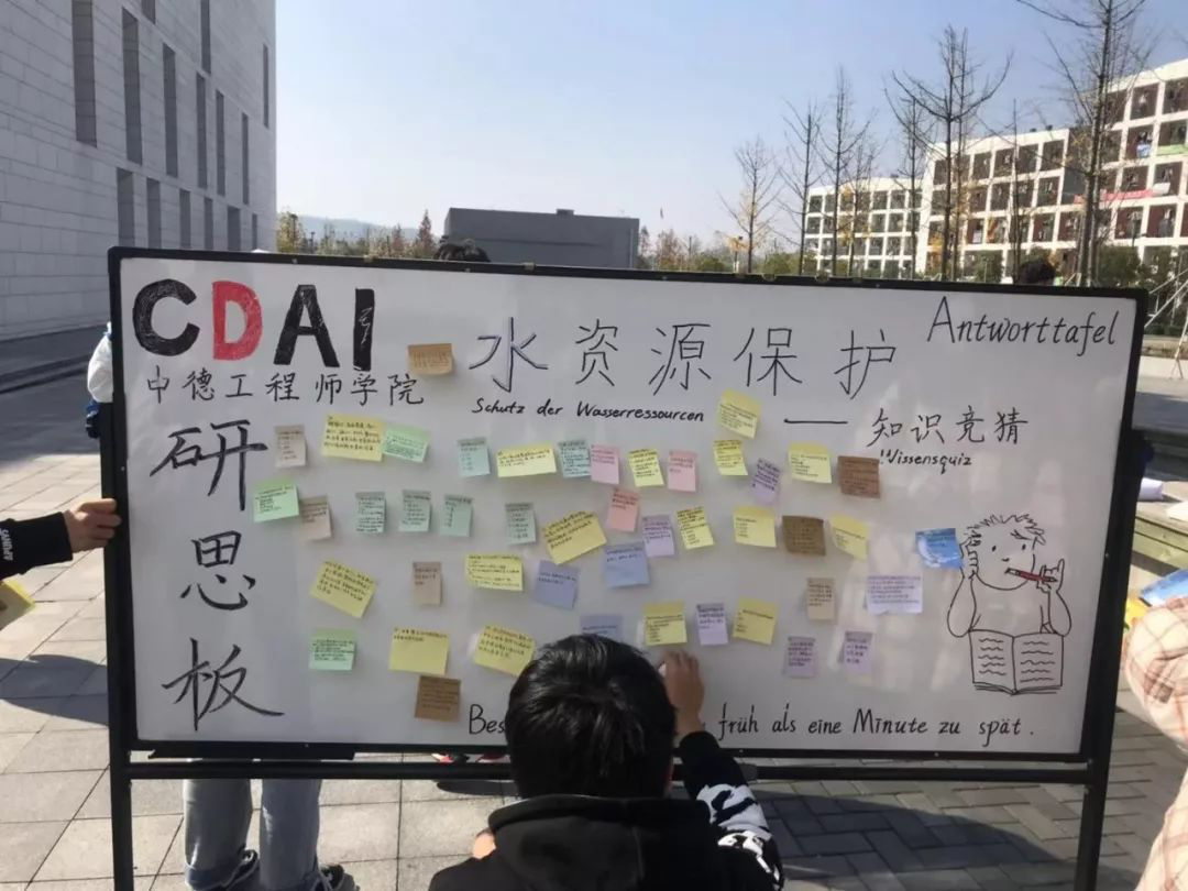 2018年11月27日中午,由中德工程师学生会组织部和生活部共同举办的水资源知识竞猜在安吉校区银杏广场顺利举行。这次活动的目的是宣传保护水资源的重要性和必要性,通过知识竞猜的形式增加大家对水资源保护的认识,节约水资源从我做起。