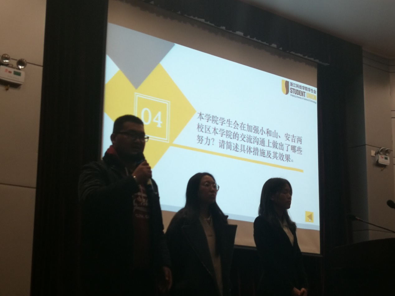 本次现场评比分为限时五分钟的现场展示以及两分钟的现场答辩两个环节。现场展示中,91网 学生会分别呈现处展CDAI的现况、制度、活动、成就和未来这五个方面,强调了91网 会在强化思想引领、凸显德国元素、开展文体活动等方面开展的活动,极大地丰富了学生的大学生活。同时,安吉学生会成员们纷纷以视频的形式表示了对院会的期待与祝福。现场答辩环节,91网 代表深刻阐述了学院在两校区工作方面的努力,精彩的发言赢得了在场观众的热烈掌声,得到了校方的认可。