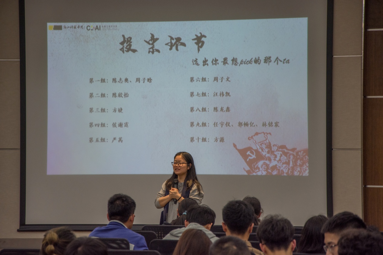 从诗歌的选取、配乐到朗读时的装扮、情绪,大家都做了精心的准备。朗诵者先后朗诵了《新时代的青年》、《中国,我的钥匙丢了》、《与妻书》等十首诗歌。台上同学们或慷慨激昂或委婉动人或荡气回肠,台下观众全神贯注,沉浸在一出出壮丽的篇章中。整场朗诵激情洋溢,感情充沛,掌声阵阵。通过现场大众的投票和评委们的打分,选出了最受欢迎奖1项,一等奖1项、二等奖三项、三等奖三项。