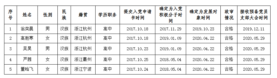 (结束)关于翁奕晨等同志预备党员转正情况的公示单
