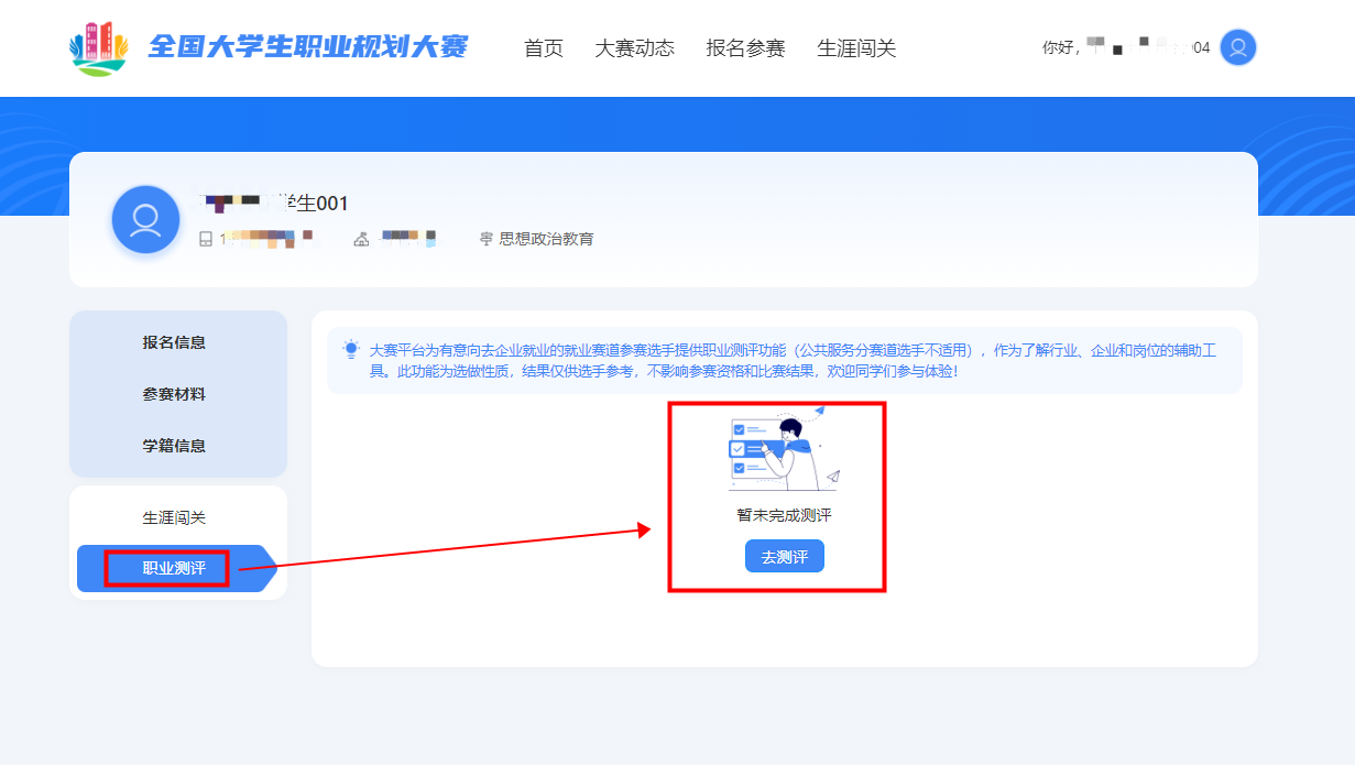 大四学生:在大赛平台提交求职简历等相关材料,做职业适配度测评,参加就业赛道比赛。要求全部参加。
